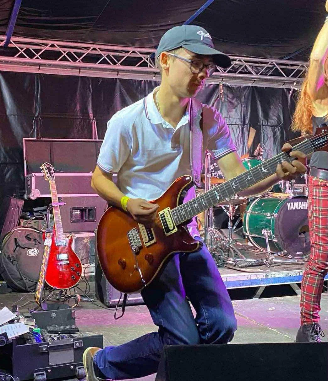 Joe joined the band in 2026, started playing guitar at 11 and joined his first band a year later. Music has always been central to his life, drawing influence from Red Hot Chili Peppers, Aerosmith, Thin Lizzy, The Seahorses and Rush — and that’s just scratching the surface. Away from the stage, Joe divides his time between throwing ropes to ships, crewing the pilot boat, teaching at Thirst Music School, and fishing on his boat at Rousse — often all in one very, very long day.
